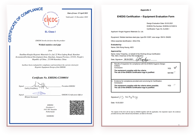 EHEDG证书-管道